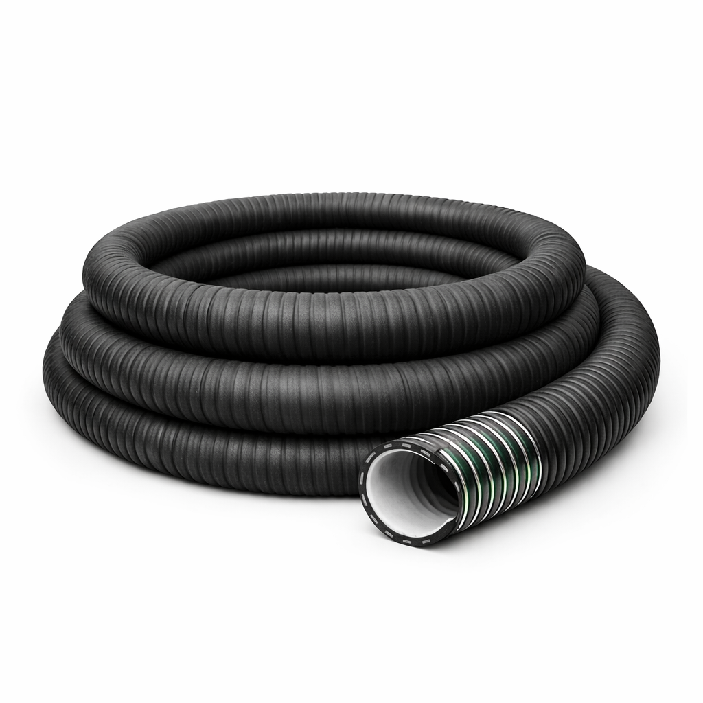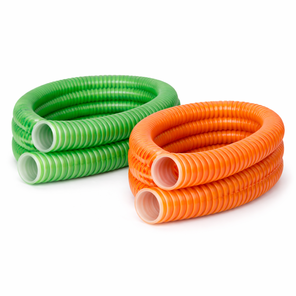 Основная особенность — наличие жесткой спирали, которая предотвращает сжатие шланга при всасывании и сохраняет его форму.