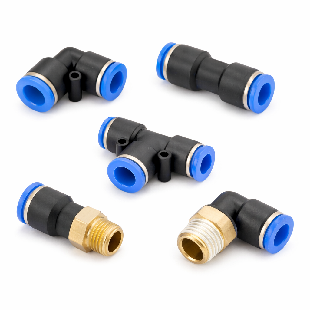 Фитинги предназначены для соединения, разветвления и изменения направления трубок в пневматических и гидравлических системах. Используются в промышленном оборудовании, автоматике, компрессорных установках и различных инженерных системах для надежного и герметичного соединения элементов. Обеспечивают простоту монтажа, герметичность соединений, устойчивость к давлению и удобство обслуживания системы.