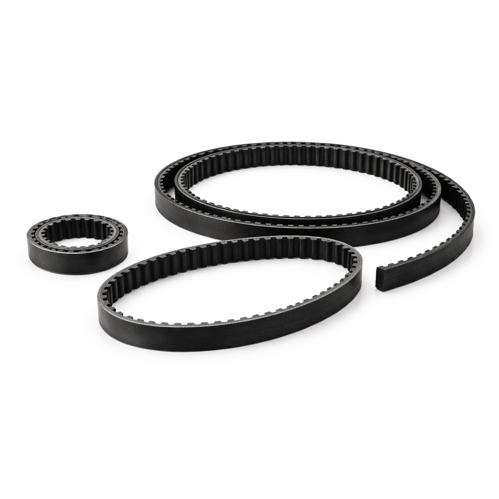 Используются для передачи крутящего момента от двигателя к рабочим узлам через шкивы. Обеспечивают надежную передачу мощности за счёт клинового профиля, который увеличивает сцепление со шкивами и снижает проскальзывание.